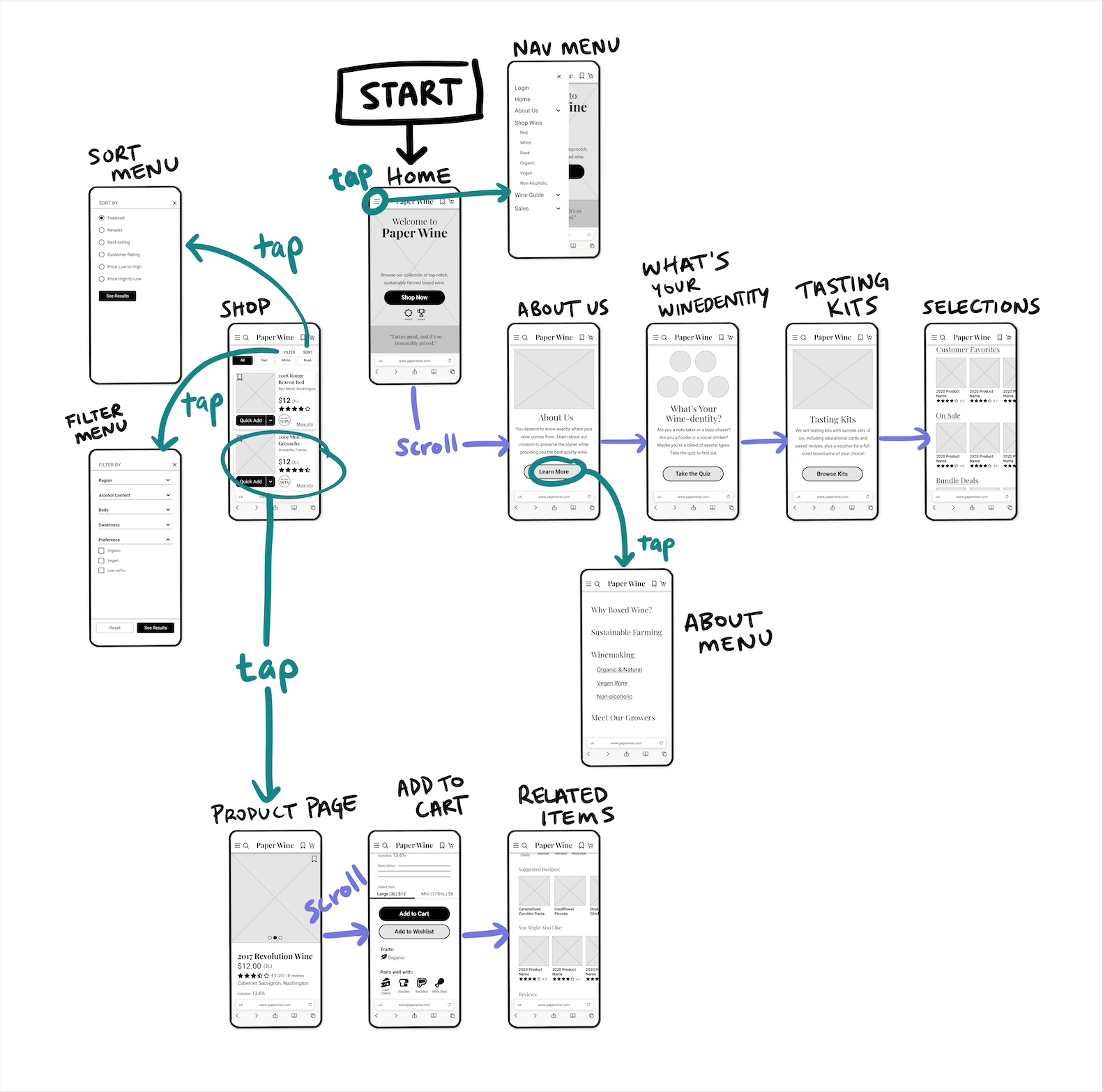 I was testing a prototype that was still in its early stages, and hadn’t built out any of the features described above, specifically the tasting kits page and the winedentity quiz. Instead, I included previews of those features on the homepage to get people’s first impressions and gauge their level of curiosity. I conducted this research with the aim of seeing what had potential and what didn’t work, rather than to test a fully functioning prototype.